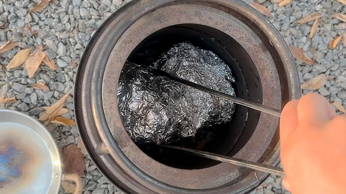 쿠킹호일은 큰 사이즈로 넉넉하게 잘라두시는게 좋아요. 호일은 약해서 화롯대 불에서 쉽게 찢어질 수 있으니까요.