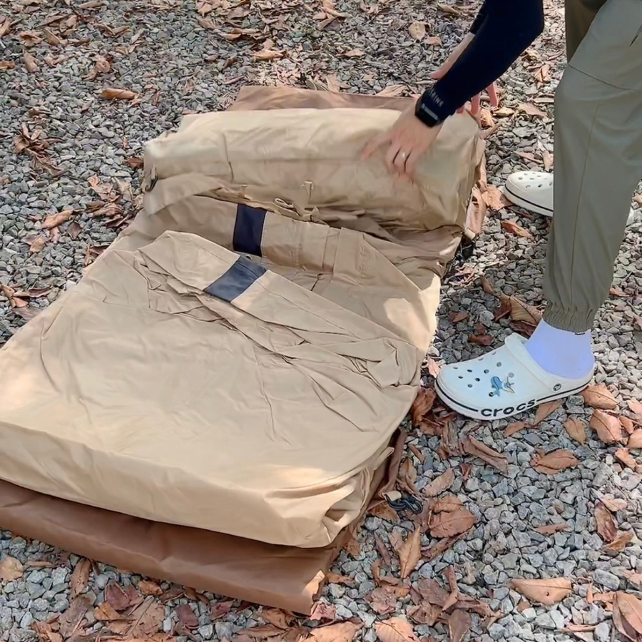 DOD 3M 이너텐트의 바닥 내부 사이즈는 대략 300 230이니 참고하세요. 저희는 이때 네이처하이크 자충 매트 150 200사이즈 두개를 붙여 사용했더니 윗부분이 조금 남았어요.