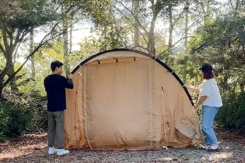 우리가 두번째로 선택한 텐트는 DOD 3M 텐트에요. 캠핑의 첫 시작은 에어텐트 네이처하이크 6.3으로 1년간 타프와 에어텐트 조합으로 캠핑을 다녔어요. 이 텐트는 에어텐트라 설치가 쉽지만 4인가족이 사용하기에는 크기가 작아서 잠만자는 용도인지라 생활하면서 여름과 가을에는 모기가 많아 불편했고, 추운 봄과 겨울에는 거실용 쉘터를 추가로 연결을 해서 사용해야했기에 수납과 이중설치의 부담감이 있었어요.우리는 4인가족이 실내에서 편하게 지낼만한 크기와 비교적 쉽게 설치할 수 있어야했고 디자인도 예쁜 텐트를 찾고 있었어요.